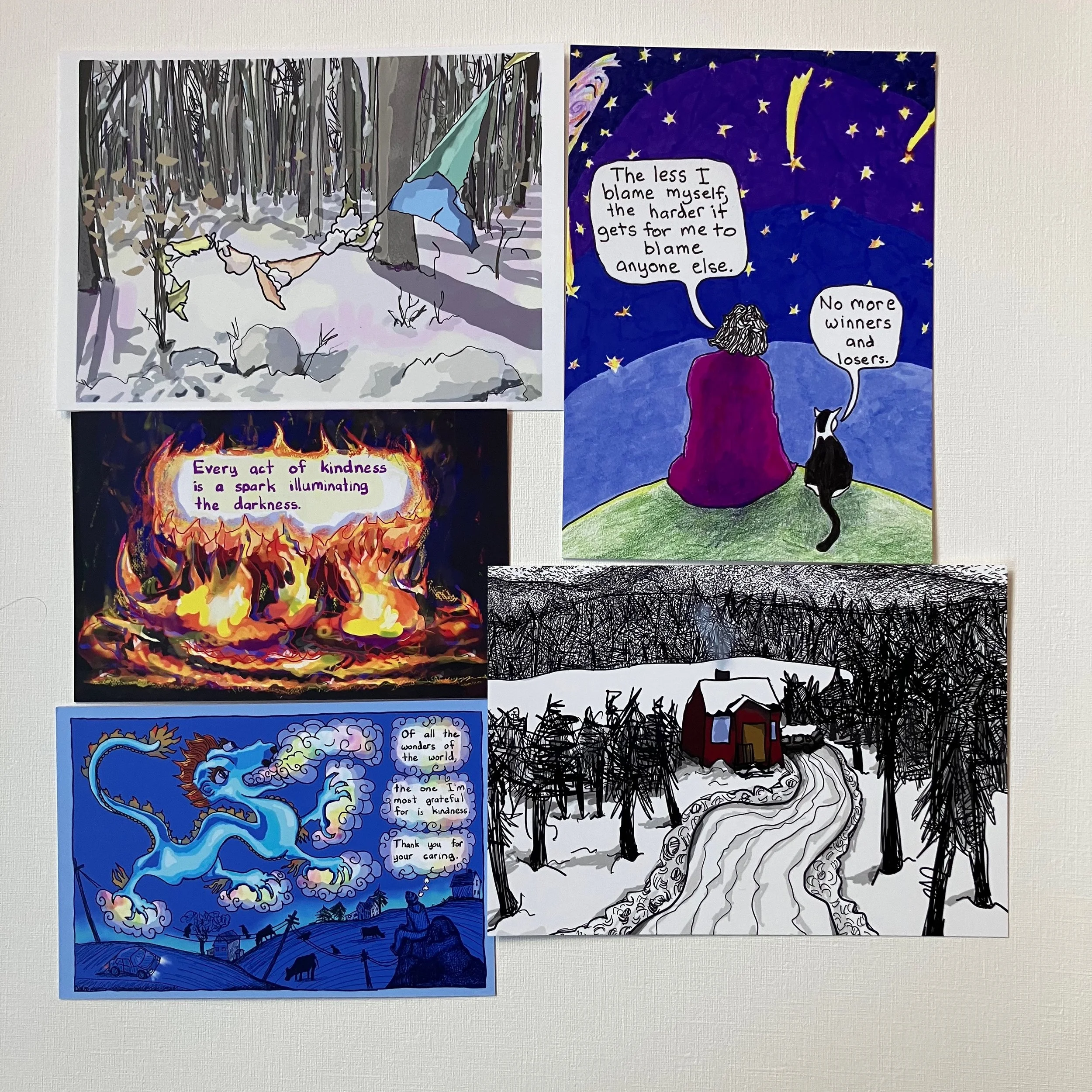 Contemplative Art & Writing by Patricia Myerson Postcards from original art work. SHOP Dragon Postcards SHOP 5-Pack Postcards